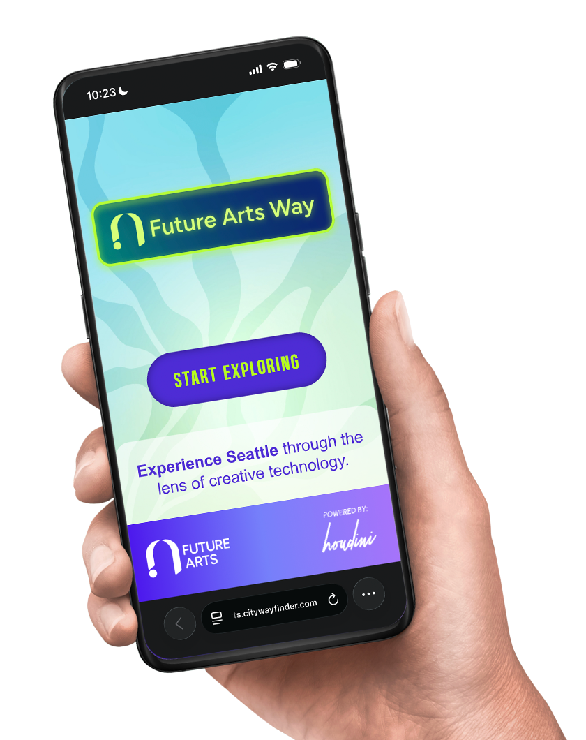Take our your phone. Open a custom designed, curated map of Downtown Seattle. Follow the journey from the North Trailhead to the South Trailhead alongside businesses - check out the AR story and go inside the business to engage with what our vibrant Seattle community stories have to offer. -